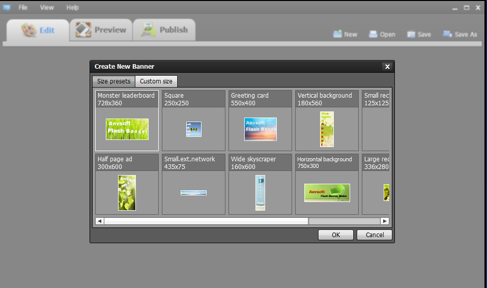 عد التثبيت والتشغيل يمنحك البرنامج مجموعة من المقاسات المتعارف عليها في مجال الإعلانات، بعد تحديد أحدها تنتقل إلى واجهة العمل وهي بسيطة جدا كما نلاحظ في الصورة، من صندوق الأدوات أكتب نص الإعلان (لا يدعم العربية) ثم حدد نمط الخط شكله وموضعه، يمكنك أيضا التلاعب بالضلال من تبويب Filters، هناك ميزة جد رائعة وهي التأثيرات على النصوص ويمكنك تحديدها من تبويب Entrance Effect بالنسبة لبداية التأثير و Exit Effect لنهايته، دائما تستطيع تغيير الخلفية بصورة من جهازك أو بلون تابث وذلك من تبويب Background.